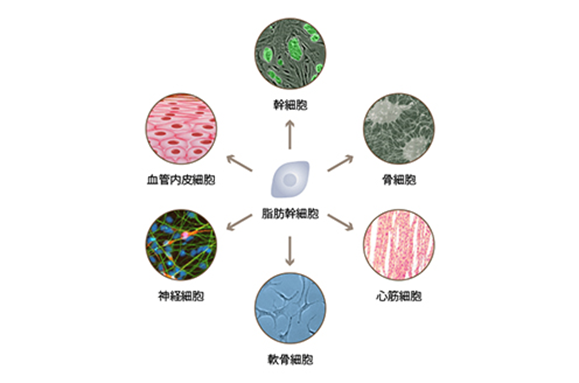 脂肪幹細胞は、脂肪細胞だけでなく、必要に応じて、身体のさまざまな組織細胞に変化することができます。